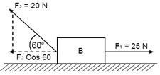 Balok B dengan massa 2 kg mengalami dua gaya masing-masing F1 = 25 N dan F2 = 20 N seperti ditunjukkan pada gambar. Maka, percepatan pada balok B adalah …