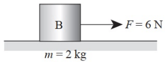 Balok B massanya 2 kg ditarik dengan gaya F yang besarnya 6 Newton. Tentukan percepatan yang dialami balok!