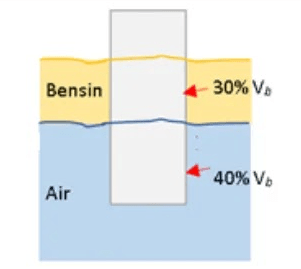Balok kayu terapung di atas permukaan dari dua cairan yang berbeda yakni bensin () dan air () seperti pada gambar di bawah.