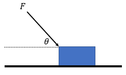 Balok massanya 4 kg berada di atas bidang licin. Kemudian balok tersebut dikenai gaya 50 N seperti pada gambar di bawah. Tentukan gaya normal.