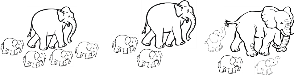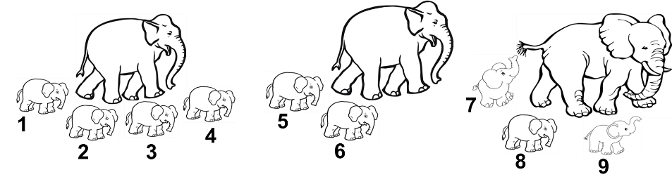 Banyaknya anak gajah pada gambar di atas adalah ... ekor.