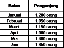Banyaknya pengunjung Taman Ragunan dari bulan Januari – Juni tahun 2017 digambarkan dalam tabel berikut ini,