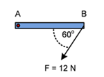 Batang AB = 2 meter dengan poros titik A dengan gaya F sebesar 12 N membentuk sudut 60°.
