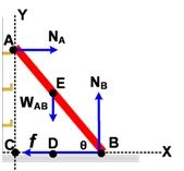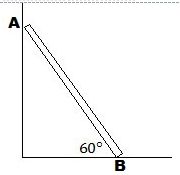 Batang AB homogen, panjang 12 m, berat 200 N bersandar pada dinding vertikal licin di A dan bertumpu pada lantai horizontal di B yang kasar. Batang AB membentuk sudut 60° di B.