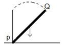 Batang homogen PQ panjangnya 1,5 m dapat berputar dengan poros di P. Jika batang semula dalam posisi vertikal, kemudian jatuh dengan poros di titik P, besar kecepatan sudut batang saat mengenai lantai adalah ….