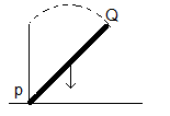 Batang homogen PQ panjangnya 1,5 m dapat berputar dengan poros di P. Jika batang semula dalam posisi vertikal, kemudian jatuh dengan poros di titik P, maka kecepatan sudut batang saat mengenai lantai adalah ...