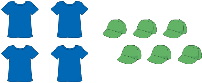 Bayu memiliki sejumlah kaos dan topi sesuai dengan gambar berikut ini.