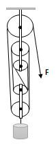 Beban dengan massa 40 kg diangkat dengan menggunakan rangkaian katrol seperti pada gambar berikut.
