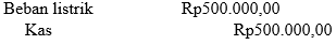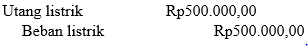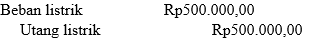 Beban listrik yang belum dibayar bulan ini adalah Rp500.000,00. Jurnal penyesuaian atas kondisi tersebut adalah…
