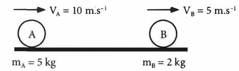 Benda A dan B bergerak seperti gambar dan kemudian bertumbukan lenting sempurna. Jika setelah tumbukan benda B bergerak dengan kecepatan 15 m/s, maka kecepatan benda A setelah bertumbukan adalah ....