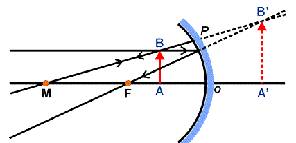 Benda yang terletak di antara cermin konkaf dan titik fokus cermin tersebut akan memiliki bayangan yang ....