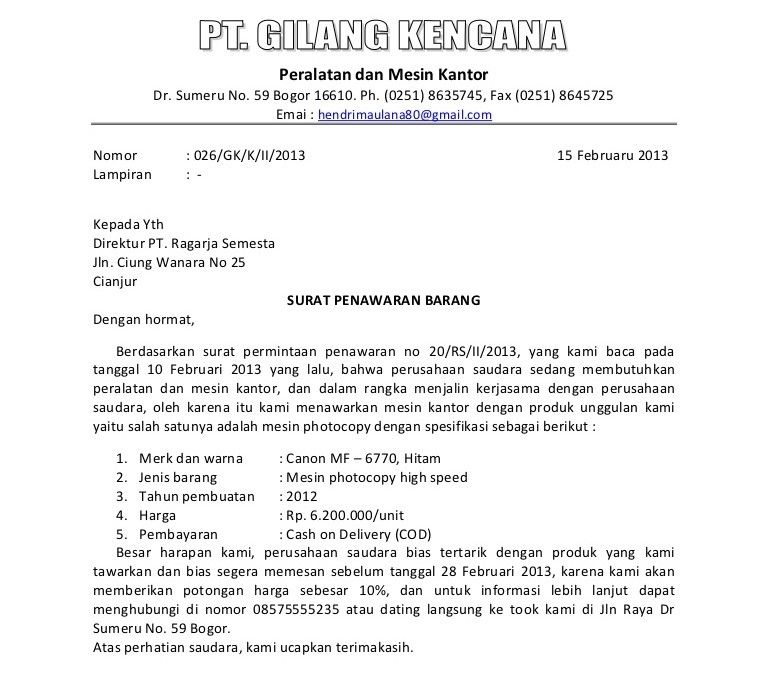 Berapakah harga barang ditawarkan dalam surat dagang tersebut?
