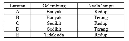 Berdasarkan data pada tabel di atas, hasil uji untuk larutan elektrolit lemah adalah....