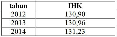 Berdasarkan data tersebut diatas, hitunglah laju inflasi tahun 2013 adalah ....