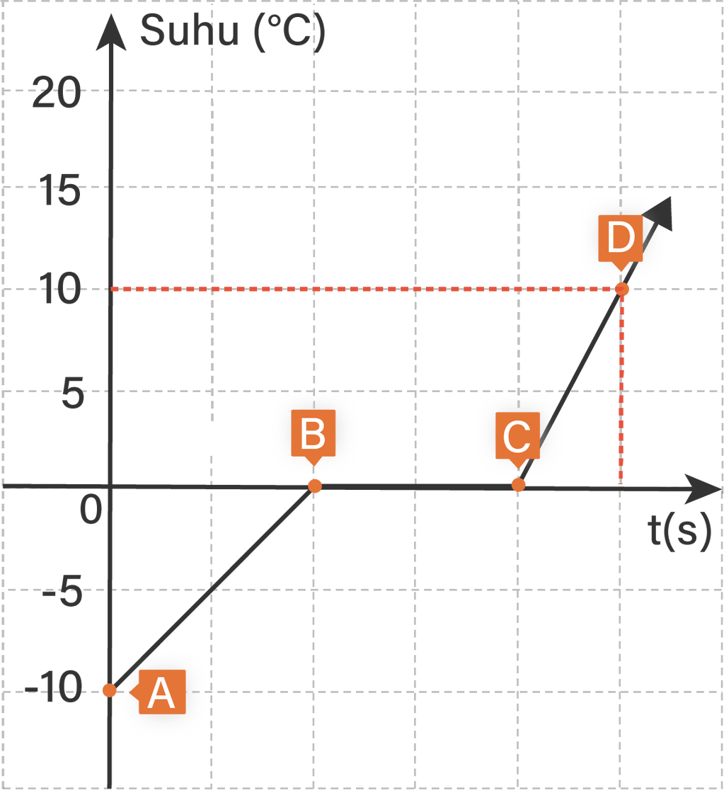 Berdasarkan grafik di atas banyaknya kalor yang dibutuhkan 10 kg es dalam proses dari B-C adalah ... (kalor jenis es = 2.100 J/kg°C, kalor lebur es = 336.000 J/kg)
