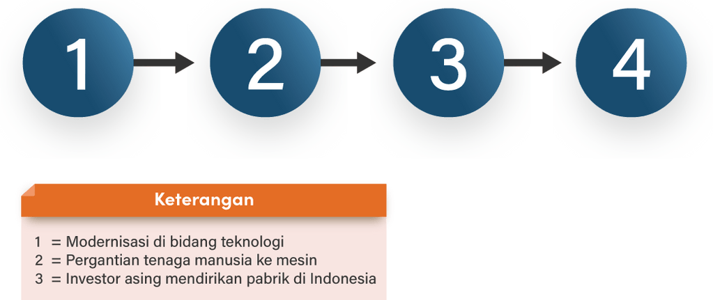 Berdasarkan ilustrasi tersebut, kondisi yang mungkin terjadi pada tahap 4 akibat proses modernisasi di bidang teknologi adalah ...