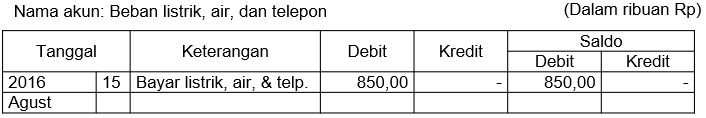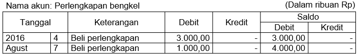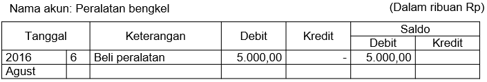 Di bawah ini adalah akun dan daftar transaksi selama bulan Agustus 201 6 pada Bengkel "Maju" milik Pak Rahman di Palopo.