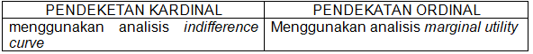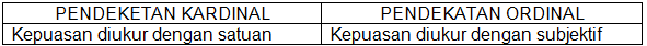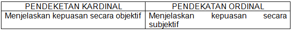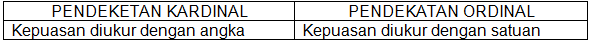 Berdasarkan tabel berikut ini, pernyataan yang benar mengenai perbedaan pendekatan kardinal dan ordinal adalah ….