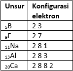 Berdasarkan tabel di atas, unsur-unsur yang mengikuti aturan duplet dalam kestabilan unsur adalah...