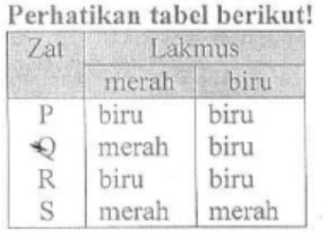 Berdasarkan tabel di atas, zat yang bersifat asam adalah