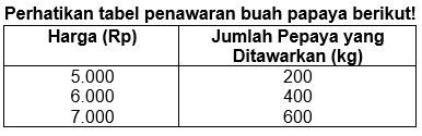 Berdasarkan tabel tersebut fungsi penawaran pepaya adalah ....