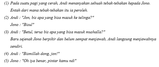 Berdasarkan teks anekdot di atas, pada nomor (1) terdapat salah satu kaidah kebahasaan teks anekdot, yaitu...