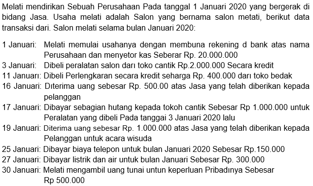 Berdasarkan transaksi salon melati tersebut maka buatlah persamaan dasar akuntasinya!