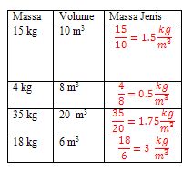 Berdasarkan ukuran massa dan volume dari pilihan jawaban di bawah ini, benda yang memiliki massa jenis paling besar adalah ...