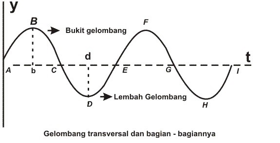 Berikut adalah bentuk dari gelombang transversal. Apabila jarak antara titik B ke E adalah 75 cm dan waktu yang dibutuhkan gelombang dari A ke I adalah 20 sekon, cepat rambat dari gelombang tersebut adalah ….