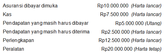 Berdasarkan informasi di atas, berapakah besarnya nilai aset lancar?