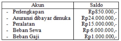 Data penyesuaian per 31 desember, adalah sebagai berikut: