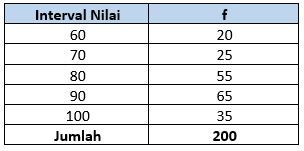 Berikut adalah data nilai ulangan Sosiologi Kelas XI.