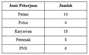 Berikut adalah data pekerjaan orangtua siswa kelas 5 SD Pelangi: