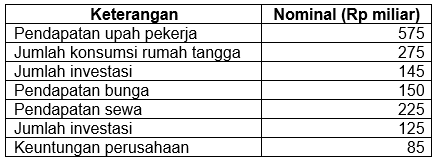 Berikut adalah data untuk menghitung pendapatan nasional atas dasar pendekatan pendapatan.