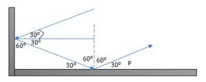 Berikut adalah gambar pemantulan cahaya pada susunan dua buah cermin datar.
