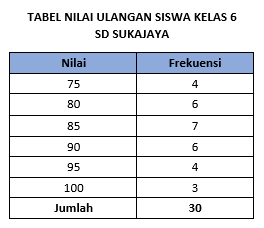 Berikut adalah nilai hasil ulangan siswa kelas 6 SD Suka Jaya: