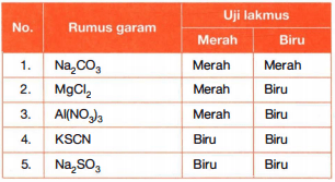 Berikut adalah tabel hasil pengujian larutan garam dengan kertas lakmus.