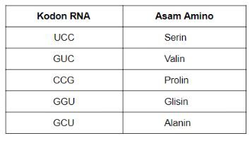Berikut adalah tabel kodon dan asam amino yang dibentuknya.