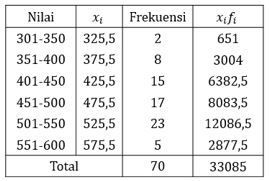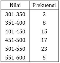 Berikut adalah tabel nilai TOEFL siswa kelas XII.