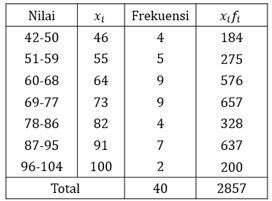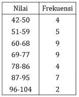 Berikut adalah tabel nilai ulangan harian matematika kelas X.