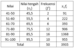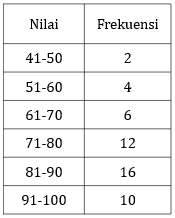 Berikut adalah tabel nilai ulangan harian Matematika kelas X.