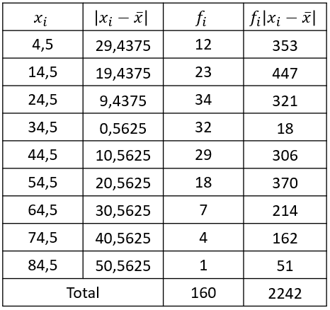 Simpangan rata-rata dari data di atas adalah ....
