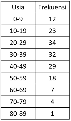 Berikut adalah tabel usia (dalam tahun) penduduk desa A.