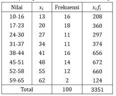 Jika data di atas diubah ke bentuk data kelompok, maka rata-ratanya adalah ....