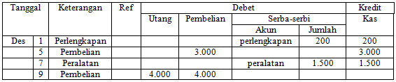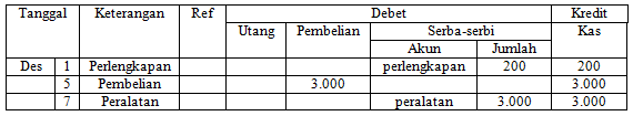 1 Desember dibeli perlengkapan secara tunai Rp200.000