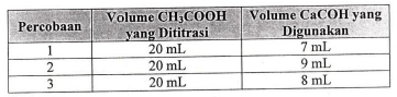 Berikut data hasil titrasi larutan dengan larutan 0,1 M: