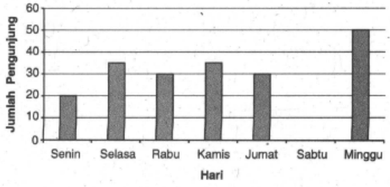 Jumlah pengunjung pada pekan pertama tersebut 236 orang. Pengunjung pada hari Sabtu sebanyak ....