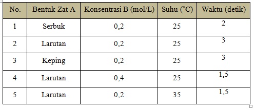 Pada percobaan 1 dan 3, laju reaksi dipengaruhi oleh faktor....