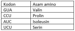 Berikut ini adalah beberapa kodon dengan asam amino yang diikatnya: