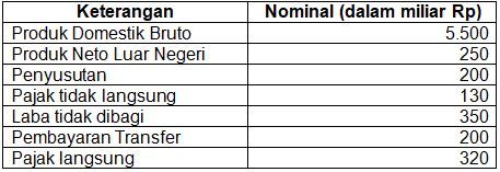 Berikut ini adalah data pendapatan nasional (dalam miliar rupiah)